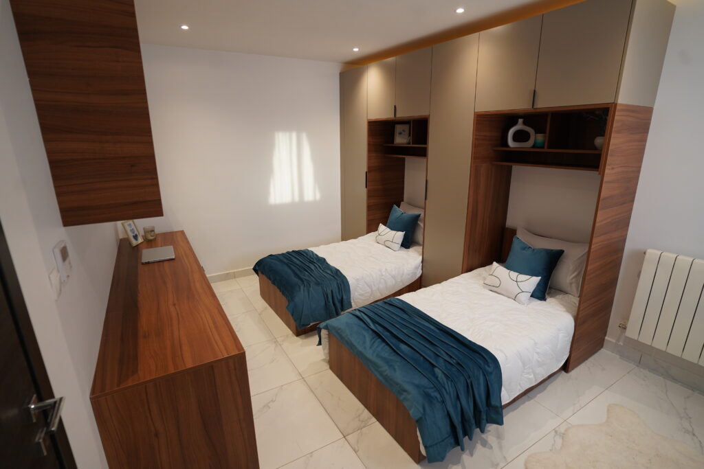 L’appartement est composé d’un grand séjour et 3 chambres et 2 salles de bain et une terrasse privative de 9m².